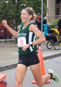 Lori Kingsley of Wysox, PA is a relative latecomer to running, but in short order she has distinguished herself as a standout masters competitor at distances ranging from the 5K to the marathon. She won the women’s masters title at both the USATF 15K and Half Marathon Championships last year, as well as running sub 2:47 at Boston. Lori managed to run a 2:51 at the Masters Marathon Championships at Twin Cities while fighting off a raging infection due to an abscessed tooth. She was second masters in December’s National Club Cross Country Championships, only the second cross country race she had ever run.
